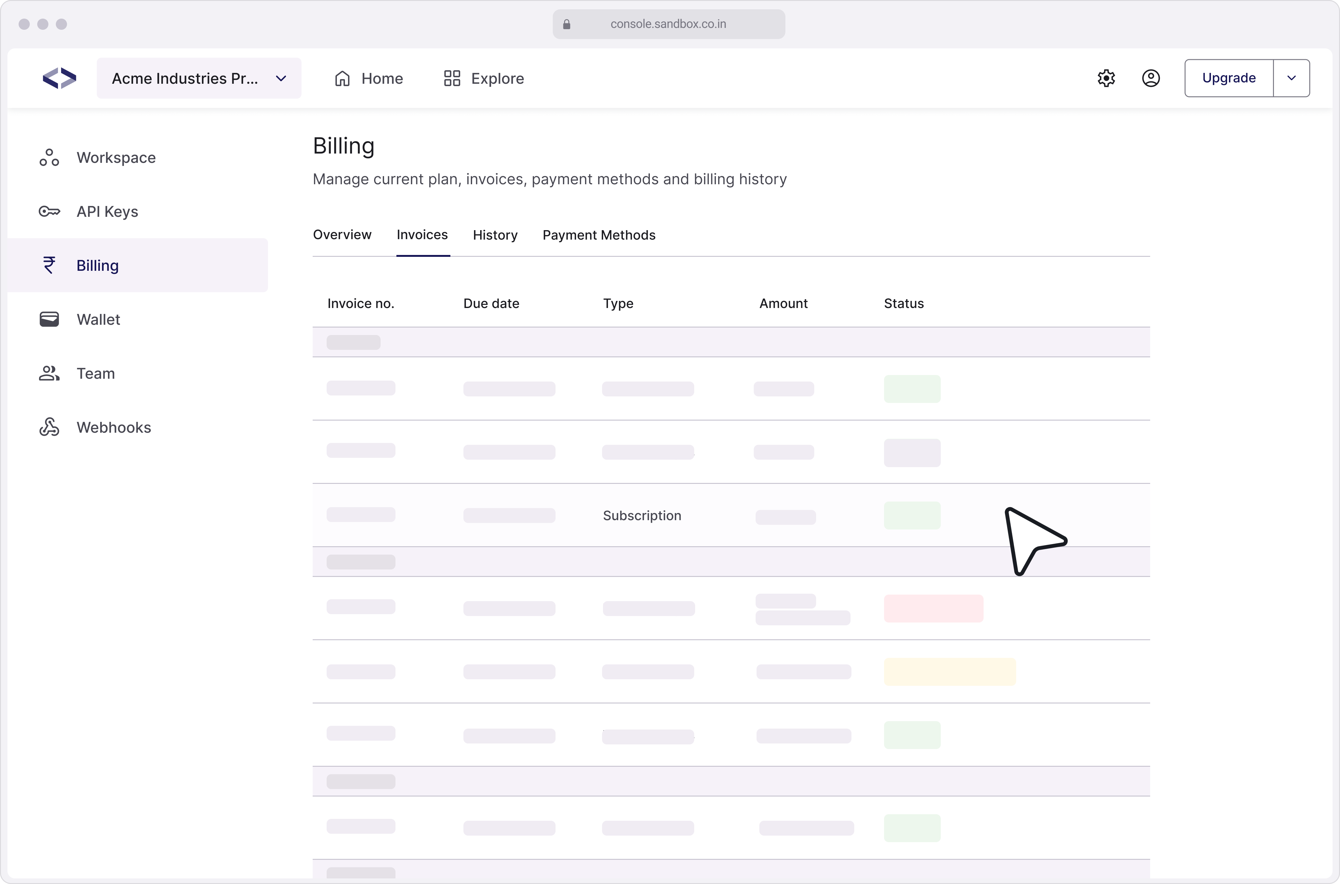 Failure to clear unpaid invoices within the given timelines can result in your plan being cancelled, which impacts your access to Sandbox APIs. What Happens if Your Invoice Remains Unpaid? 30 Days Grace Period – Each invoice carries a 30-day grace ...
